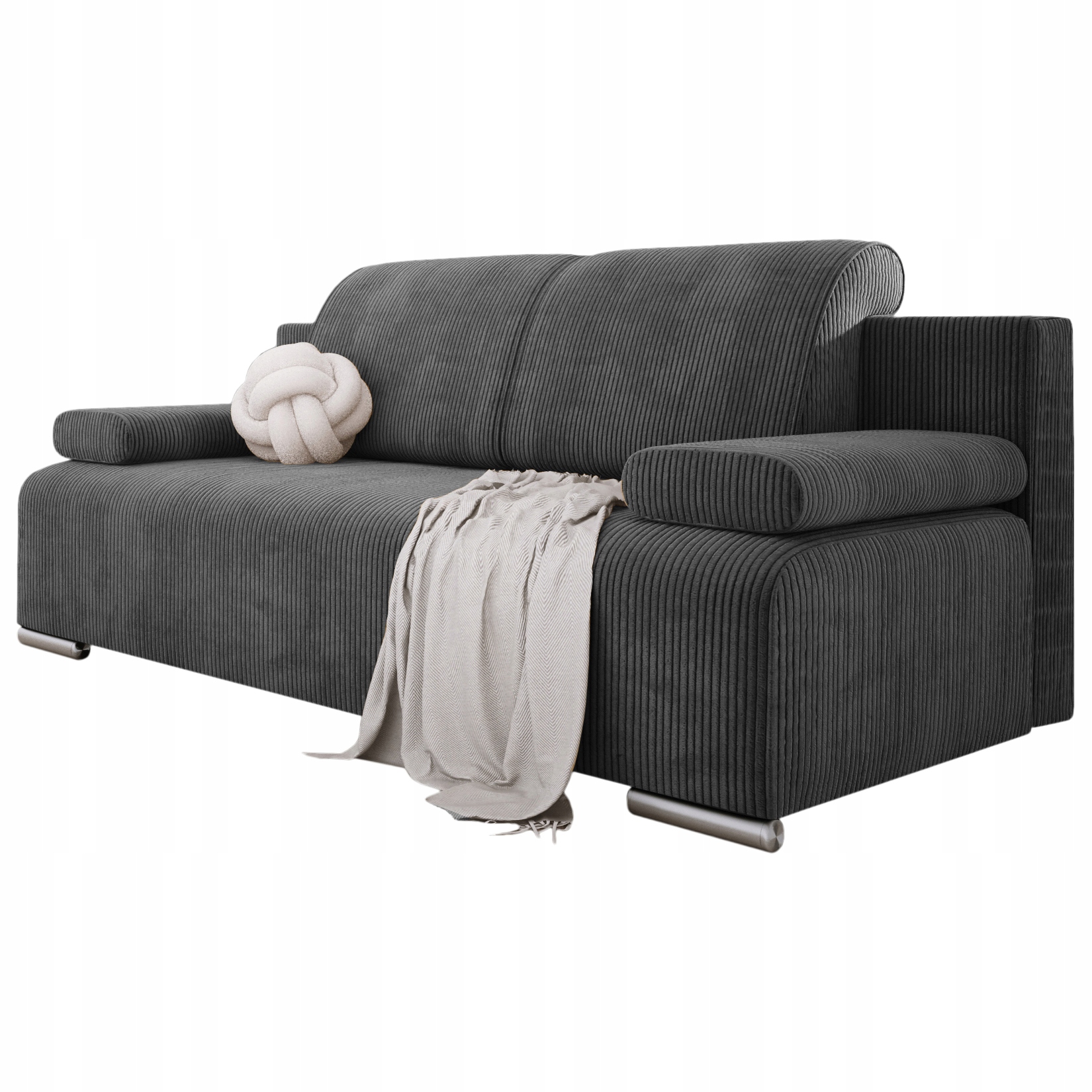 Kanapa młodzieżowa z funkcją spania BONA szary sztruks bonell pojemnik sofa
