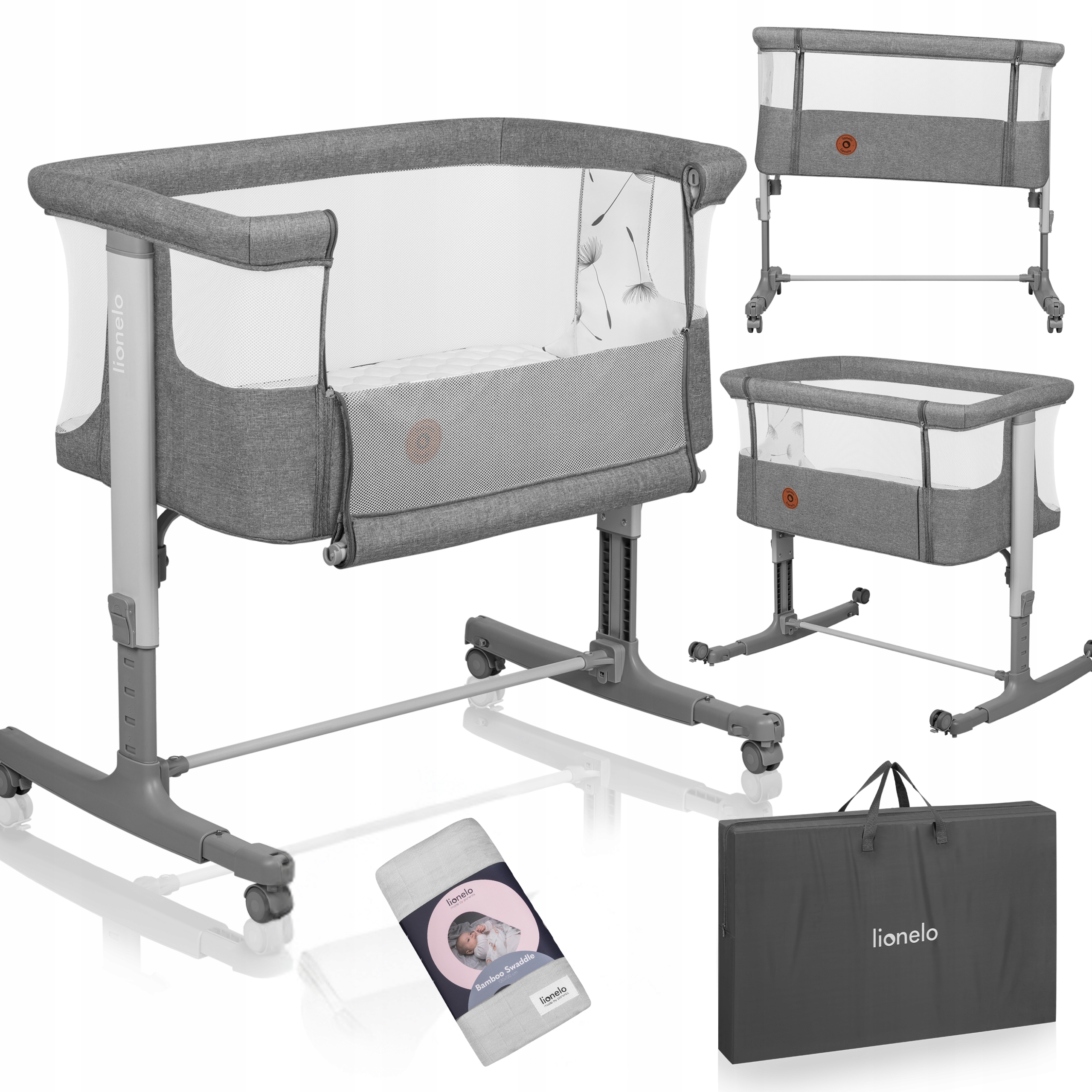 Łóżeczko wolnostojące + łóżeczko dostawne+ kołyska wraz z otulaczem bambusowym Lionelo Aurora